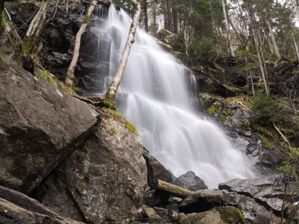 Nach kurzer Zeit erreichten wir den Zweribach-Wasserfall. 40 Meter tief stürzt der Zweribach dort ins Simonswälder Tal, wo er in die wilde Gutach mündet. Der Anblick des Wasserfalls war wirklich imposant.