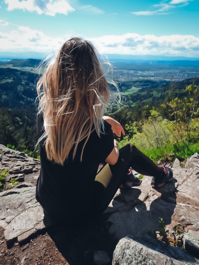 Am Kybfelsen bzw. den Überresten der Burg Kybfelsen angekommen, wurden wir mit einer grandiosen Aussicht ins Rheintal bis hin zu den Vogesen, auf Freiburg sowie in die Ferne des Schwarzwaldes belohnt. Eine Rast und ein paar Fotos waren ein absolutes Muss, auch wenn es hier etwas voller war, als auf dem Rest der Wanderung. Am Kybfelsen sind neben Wanderern auch Mountainbiker unterwegs, da sich dort oben auch Trails für Mountainbike Begeisterte befinden. Beliebt ist unter anderem der Canadian Trail.
