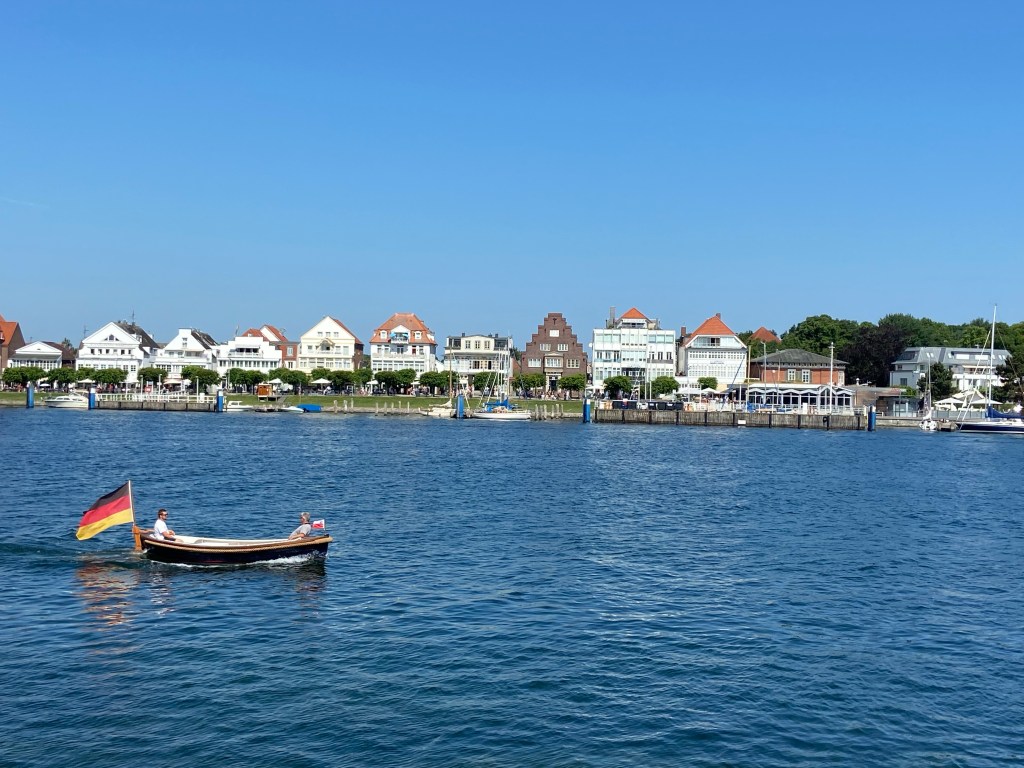 Wir starten unsere Tour in der Ferienanlage Priwall Waterfront. Entlang der Priwall Promenade gehen wir Richtung Fährvorplatz. Das rege Treiben auf der Trave lässt sich auf dem kleinen Wegstück hervorragend beobachten. Vom Fährvorplatz aus gelangen wir zum Seglerhafen, dem ersten kleinen Highlight der Tour. Fest vertäut liegen dort prachtvolle, große und kleine Segelboote im Hafenbecken.