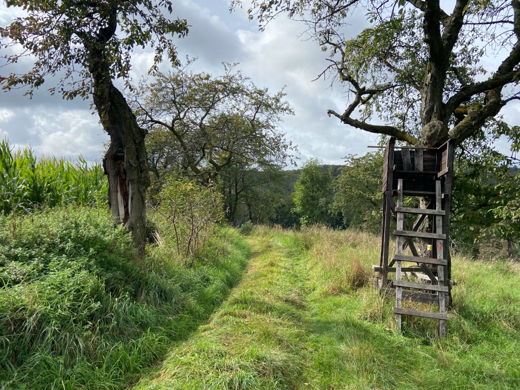 Durch den Wald geht es nun Richtung Somsdorf. Entlang ortstypischer Häuser und Höfen geht es durch den Ortskern hindurch, bis wir rechts in den schmalen Pfarrweg abbiegen. Schon sind wir wieder mitten in der Natur. Typisch für eine Anhöhe pfeift der Wind über den Feldweg. Nachdem wir unsere Jacken angezogen haben, genießen wir noch kurz die Aussicht und wandern entlang eines langgezogenen Maisfelds Richtung Tharandt. Über eine Wiese (Wanderweg S0) erreichen wir den Rastplatz Sonnentempel.