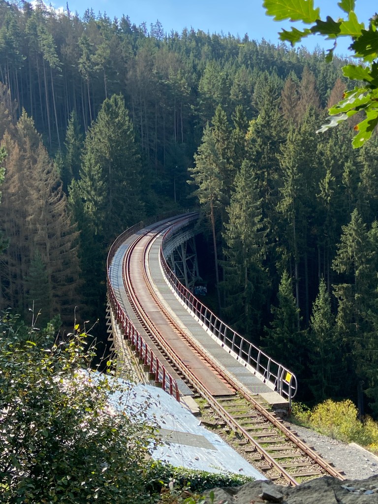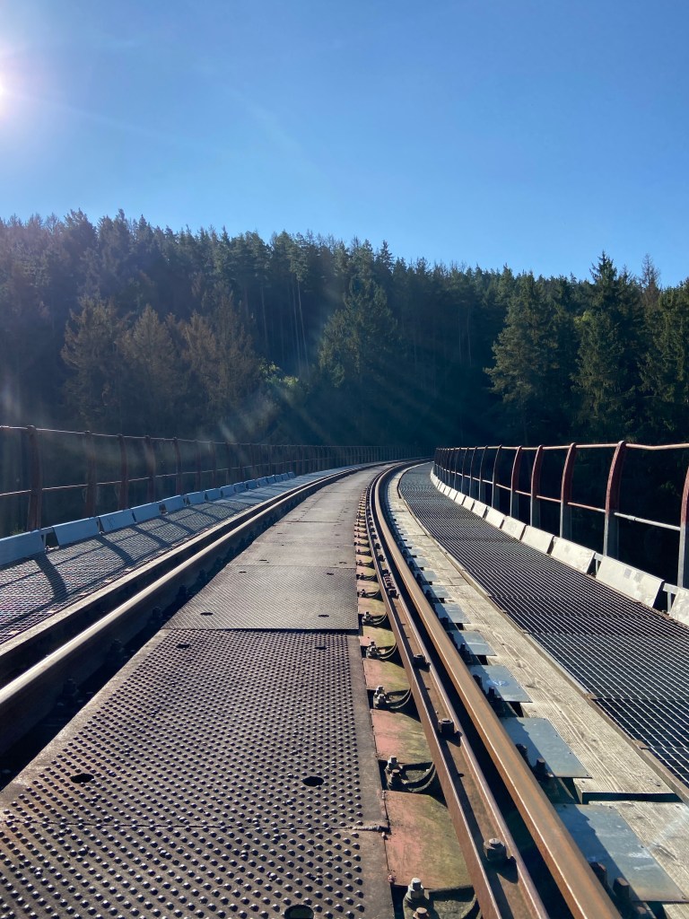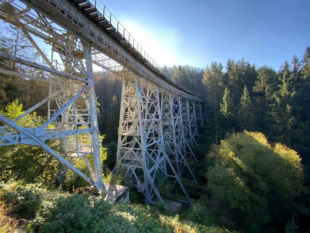 Zwei Blogeinträge haben mir besonders ins Auge gestochen: eine Route zur Ziemenstalbrücke. Die Ziemenstalbrücke ist ein 115 Meter langer und 32 Meter hoher Viadukt der Bahnstrecke Triptis-Marxgrün in Thüringen, der zwischen 1893 und 1895 erbaut wurde. Die Strecke ist auf dem Abschnitt, auf dem sich sie Brücke befindet, inzwischen stillgelegt. Die Ziemenstalbrücke ist jedoch heute noch immer in ihrer ursprünglichen Form erhalten und steht seit der Stilllegung der Strecke unter Denkmalschutz.