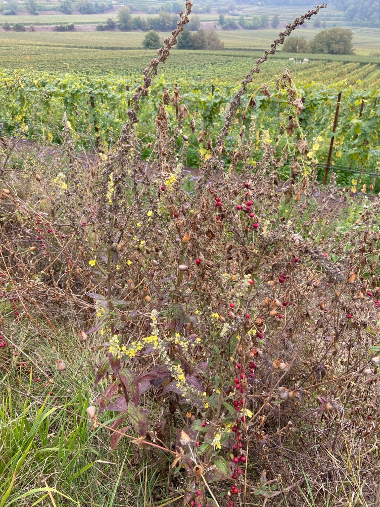 Wir folgten dem Weg, wie er im Wanderführer beschrieben wird entlang Weinbauflächen, durch Wälder, mal leicht bergauf und leicht bergab. Herbstliche Pflanzen zierten den Wegesrand und wir genossen die Stille abseits des Ortes Rotweil.