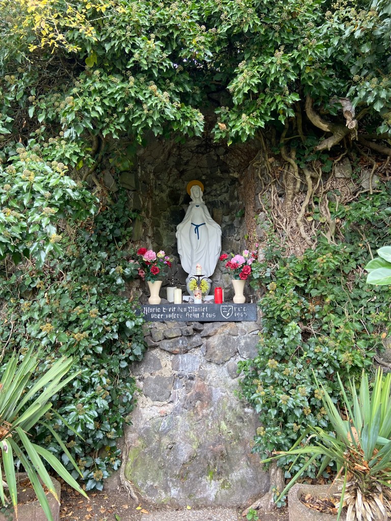 Nach einer kurzen Verschnaufpause und Erkundung der Burgruine stiegen wir zur Lourdes-Grotte hinab.