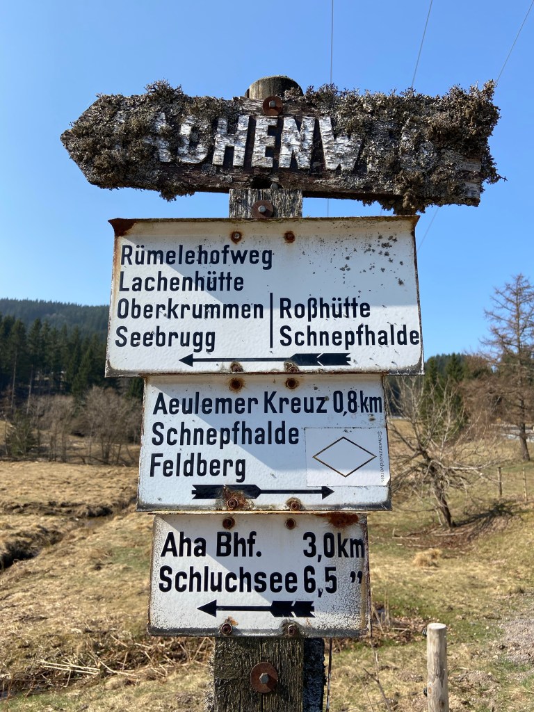 An einem schönen sonnigen Samstag Morgen, Ende März, starte ich meine Wanderung am Bahnhof Aha im Hochschwarzwald. Mein erstes Etappenziel ist der Gipfel der Schnepfhalde.