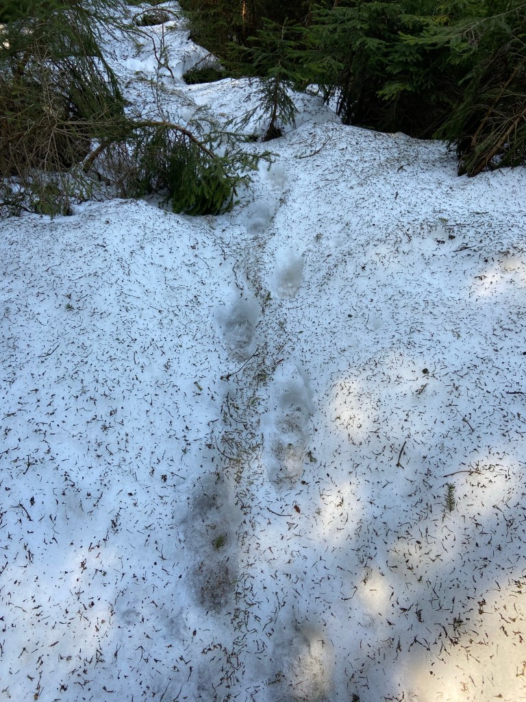 Von der Rosshütte folge ich weiter der blauen Raute und wandere vorsichtig auf Eis und Schnee entlang des Rosshüttenwegs. Still ist es im Wald, anderen Wanderer begegne ich nicht, sodass ich mich voll und ganz auf den Weg konzentrieren kann. Plötzlich höre ich lautes Flügelschlagen und ein Auerhahn erhebt sich, nicht ganz majestätisch, in die Lüfte. Was für ein Erlebnis, ein so seltenes Tier in freier Wildbahn sehen zu können.
