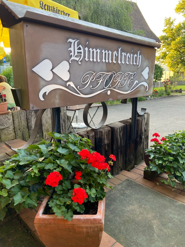 Dort angekommen, kehren wir noch im Hofgut Himmelreich ein. Dort ist neben Hotel und Gastronomie eine Ausbildungsakademie für Menschen mit geistiger Behinderung eingerichtet. Die Auszubildenden erhalten hier im hauseigenen Beherbergungsbetriebes berufliche Qualifikationen. Die Preise waren etwas teurer als gedacht, aber nach einer Wanderung ist ein kühles Bier eine angenehme Erfrischung.