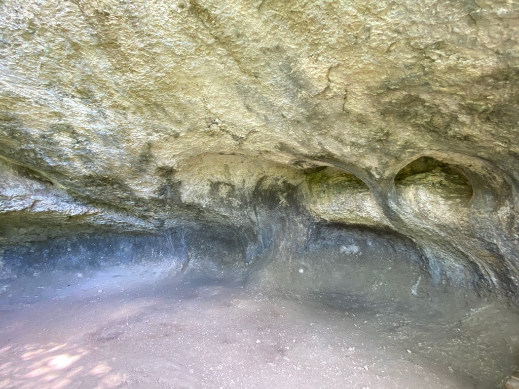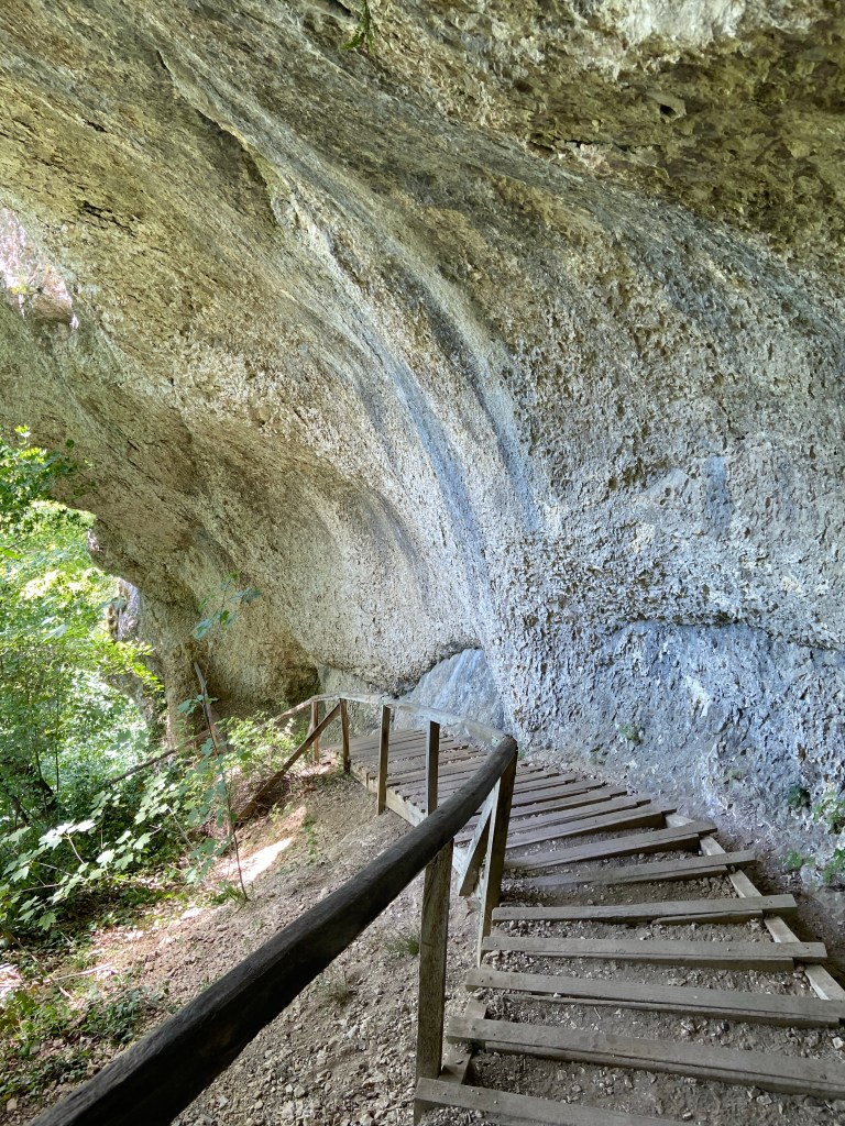 Vom Känzele geht es nun weiter zu den Inzigkofer Grotten. Bei den Inzigkofer Grotten handelt es sich um unterspülte Felswände. Besonders imposant ist die Nebelhöhle, eine mehr als 5 Meter hohe und über 10 Meter tiefe Felsengrotte, die während der Nutzung Inzigkofens als Sommersitz durch Erbprinz Karl-Anton und seine junge Familie in den 1840er Jahren mit Tischen und Holzbänken möbliert und mit altertümlichen hölzernen Waffen entlang den Felswänden ausstaffiert war.