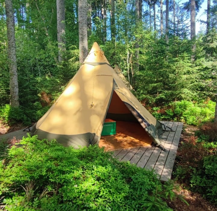 Mein Freund hatte sich für eine Übernachtung im Tipi „Moospaul“ entschieden. Der Weg zu unserem Moospaul führte über schmale, wurzelige Pfade, welche von Blaubeersträuchern umsäumt waren.