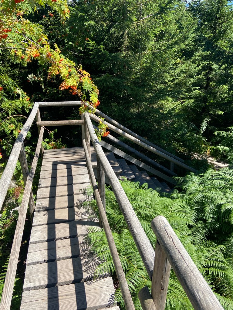 Der Lotharpfad führt dabei über Stege, Leitern und Treppen. Eine Aussichtsplattform bietet normalerweise Fernblicke über die Höhenrücken des Nordschwarzwalds und ins Tal. Zum Zeitpunkt meines Besuchs, war die Plattform leider geschlossen, die Gründe kenne ich nicht.