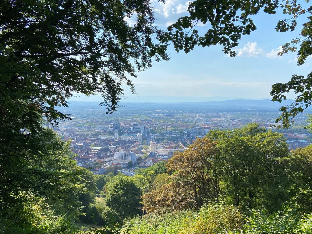 Ein weiterer Aussichtspunkt kommt bald in unser Sichtfeld. Von hier hat man einen Blick und den Westen Freiburgs, inklusive dem neuen Stadion, dem Flugplatz und dem Messegelände.