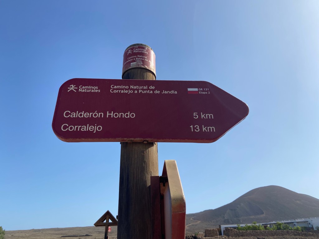Mit dem Bus (Linie 8, Corralejo – El Cotillo) geht es für uns Richtung Lajares. Der Bus ist alt und klapprig, aber der Busfahrer bringt uns trotzdem zuverlässig an den östlichen Ortsrand des kleinen Örtchens. Am Fußballstadion biegen wir in die Straße nach Majanicho ein und folgen ihr ca. einem Kilometer, bis wir an eine große Informationstafel kommen.