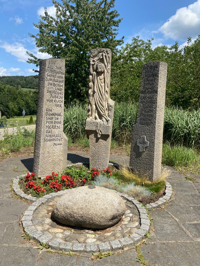Ab dem Kreuz geht es auf einem schmalen Pfad über mehrere Kehren steil bergab bis zur Neunlindenkapelle. Die Kapelle wurde 1912 bis 1913 auf einer Anhöhe westlich der Stadt Elzach erbaut. Die Form des Bauwerks entspricht der eines griechischen Kreuzes. Die Kapelle zählt zu den Wahrzeichen Elzachs. Entlang eines Wassertretbeckens geht der Weg nun immer weiter bergab, bis wir im Ortskern ankommen. Hier entschieden wir uns noch zu einer weiteren Einkehr, um erneut mit einem Glas Sekt auf die Tour anstoßen zu können. Ich freue mich auf die nächsten 50. Wanderungen.