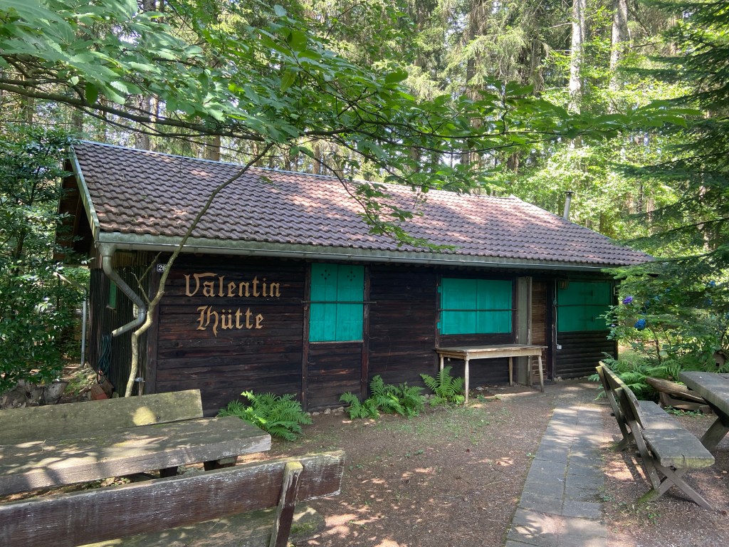 Nach ca. 300 Metern halten wir uns links und kommen auf einen breiten Landwirtschaftsweg, der uns zur der schönen Valentin-Hütte bringt, welche verborgen am Wegesrand liegt. Eine schmucke, gepflegte Hütte mit einem tollen Vorgarten.