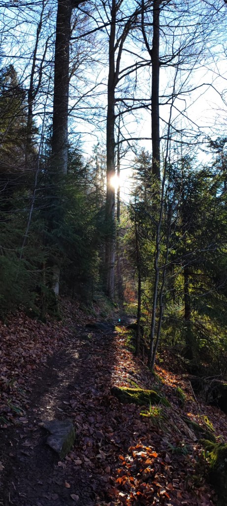 Der Weg führt nun weiter zum Wegpunkt „Sattel“, von wo es weiter zu unserem Ausgangspunkt, der Bergwelt Kandel geht. Da das Wetter so schön ist und die Sonne noch genug Licht bietet, verlängern wir unsere Wanderung etwas. Jedoch war die Verlängerung nicht sonderlich spannend, weswegen ich den direkten Weg zum Ausflugsrestaurant empfehle. Dort lassen wir unsere Tour bei einem Cappucchino und einem sagenhaften Sonnenuntergang auf der Terrasse ausklingen.
