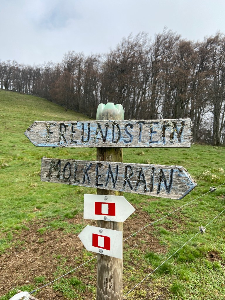 | Einkehr | Auf der Wanderung kann man in der Ferme-Auberge du Freundstein sowie Refuge du Molkenrain und Ferme Auberge du Molkenrain (www.molkenrain.fr) einkehren. Nicht direkt auf dem Weg gelegen, jedoch mit einem kleinen Umweg erreichbar, bietet sich auch die Ferme-Auberge Ostein (www. ferme-auberge-ostein.edan.io) zur Einkehr an. Bargeld nicht vergessen. |