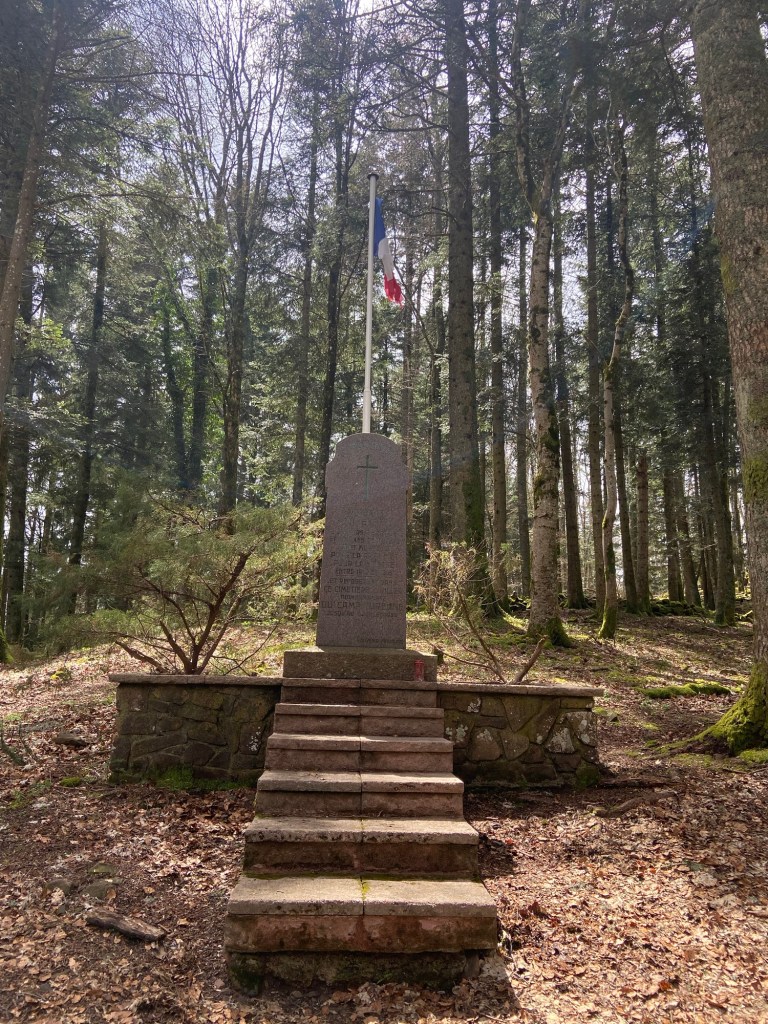 Ca. 300 Meter von dem Aussichtspunkt befindet sich, direkt an einer Wegverzweigung, das Camp Turenne (Thomasplatz). Dieser strategisch günstige Ort, diente den Franzosen im ersten Weltkrieg als Logistikstützpunkt. Wir verabschieden uns von unserer französischen Kurzbekanntschaft und setzen unseren Weg auf der breiten Forststraße, Cemin du Camp Turenne (Markierung: blaues Dreieck), fort. Der Abschnitt der Wanderung ist im Vergleich zur restlichen Tour relativ unspektakulär. So freuen wir uns, dass wir nach 1,4 Kilometern links abbiegen können. Der Forstweg verläuft nun leicht bergauf. Nach ca. 500 Metern biegen wir erneut links ab und steigen steil auf einem schmalen Pfad den Berg hinauf. Oben angekommen erwartet uns das Refuge du Molkenrain.