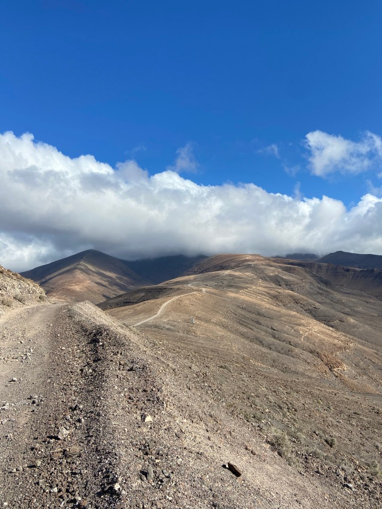 Nun befinden wir uns schon auf dem Weg, der uns bis zum Gipfel des Pico de la Zarza führen wird. Doch ehe wir auf dem höchsten Gipfel Fuerteventuras ankommen, besteigen wir nun den mit 211 Höhenmetern deutlich niedrigeren Talahijas. Als wir diesen hinter uns gelassen haben, liegt unser Weiterweg wie auf dem Präsentierteller vor uns.