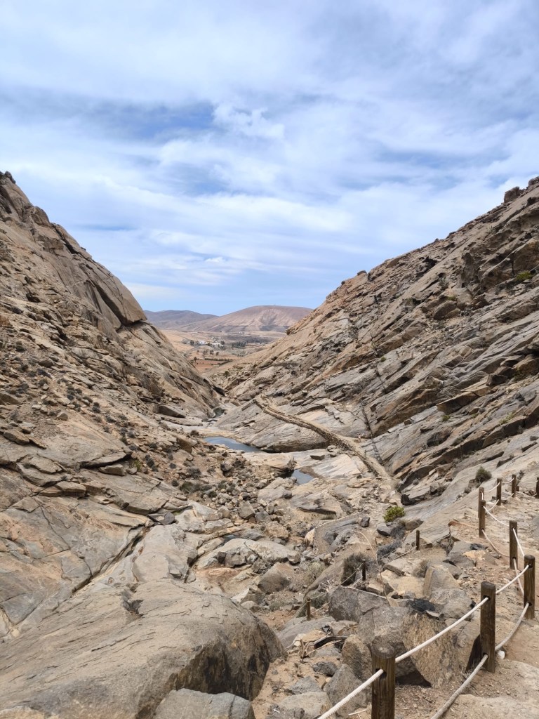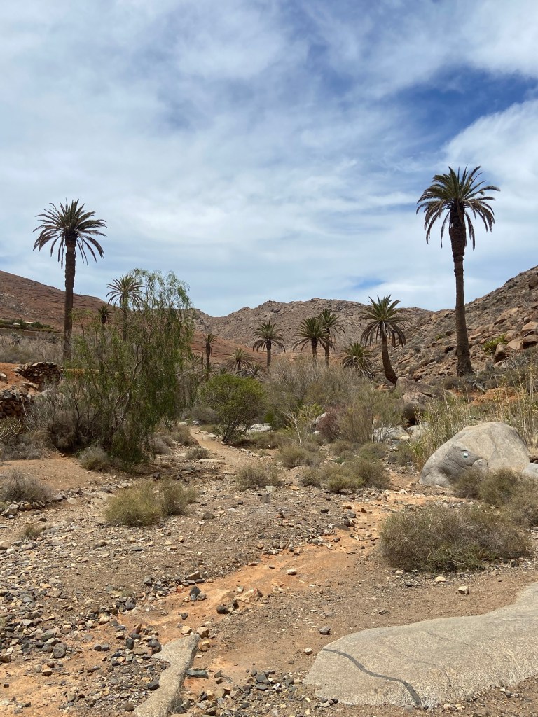 Schon bereits zu Beginn der Wanderung fallen die vielen Dattelpalmen entlang der Schlucht auf. Inmitten der hohen, kahlen Berge wirken sie wie eine Oase in der kargen Landschaft. Der Wasserlauf der zu dieser Seltenheit beiträgt, ist der Mal Paso. Das Wasser entspringt dem Betancuria Massiv, genauer an der Flanke des Berges Morro Tegu und versorgt so das palmenreiche Tal mit der lebenswichtigen Flüssigkeit. Die dadurch entstehende Fruchtbarkeit trägt zu einem auf Fuerteventura eher ungewöhnlichen Landschaftsbild bei. In der Regenzeit konnte früher ein starker Fluss entstehen, so dass dieser in 40er Jahren sogar gestaut wurde, um die Wasserversorgung der Region zu verbessern.
